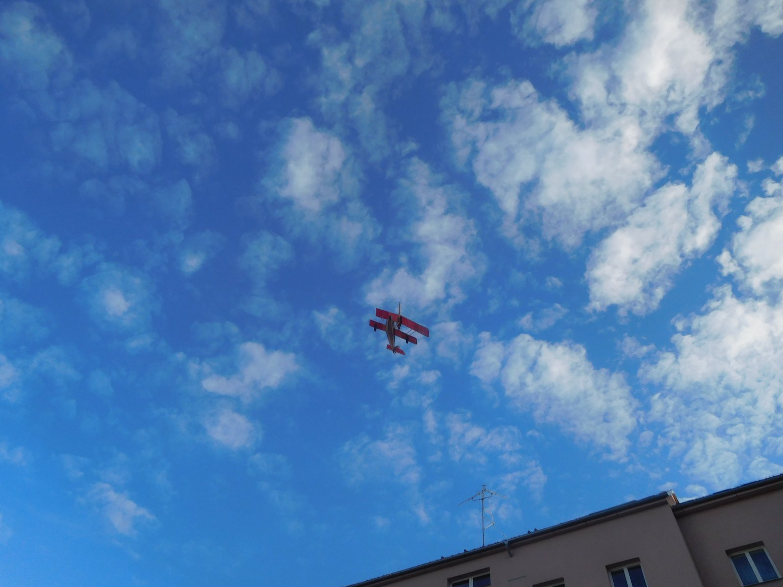 Při focení takovým kompaktem jsou zcela marné záběry oproti čisté obloze protože model o velikosti 0,3m je tak malý, že takový aparát na něj není schopen zaostřít a expozice se buď vůbec nekoná, nebo to cvakne po mnoha vteřinách. Snažím se proto mít v záběru i něco většího, strom, nebo část baráku, na to se zaostří a expozice je v setině sekundy. Při dobrých světelných podmínkách je pak obojí v rozsahu hloubky ostrosti a v počítači lze často výřezem i ten pevný objekt odříznout.