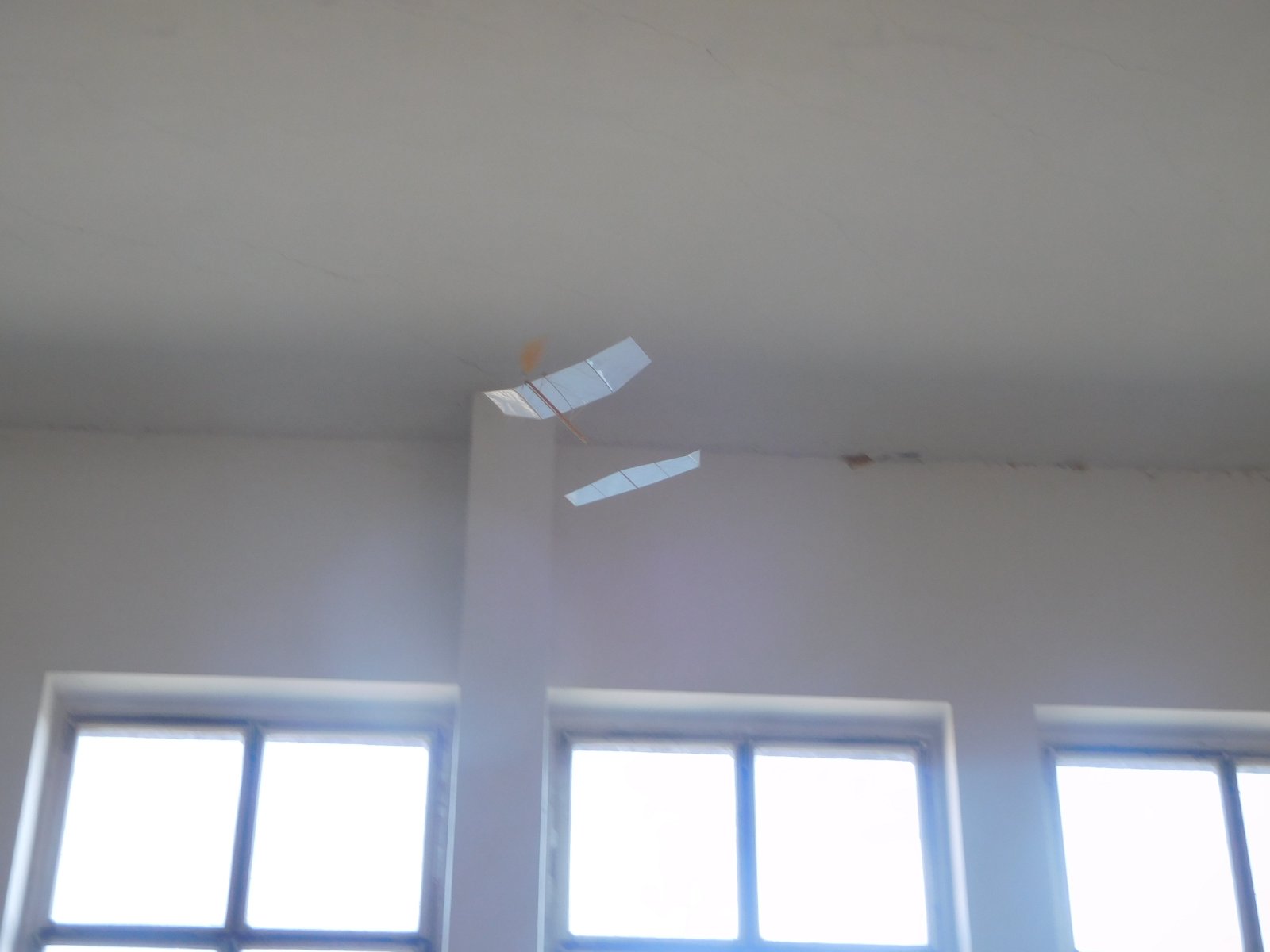 3. 1700 hrozně tvrdá guma, velký moment, ostrý start na VOP naskočil na 12s opačný twist a model nezatáčel jen prudce stoupal proti stěně, dost nešťatně jsem zastíroval, model se otočil zrychlil, opět opačný twist,klesání. odpadává VOP, model padá na dlažbu, odtrhuje se ložisko s vrtulí od motorsticku a vylamuje list vrtule z nosníku. Doma oprava vteřiňákem a za půl hodiny je vše OK.Je mi jasné, že tak silmé gumičky tento model nesnese.
