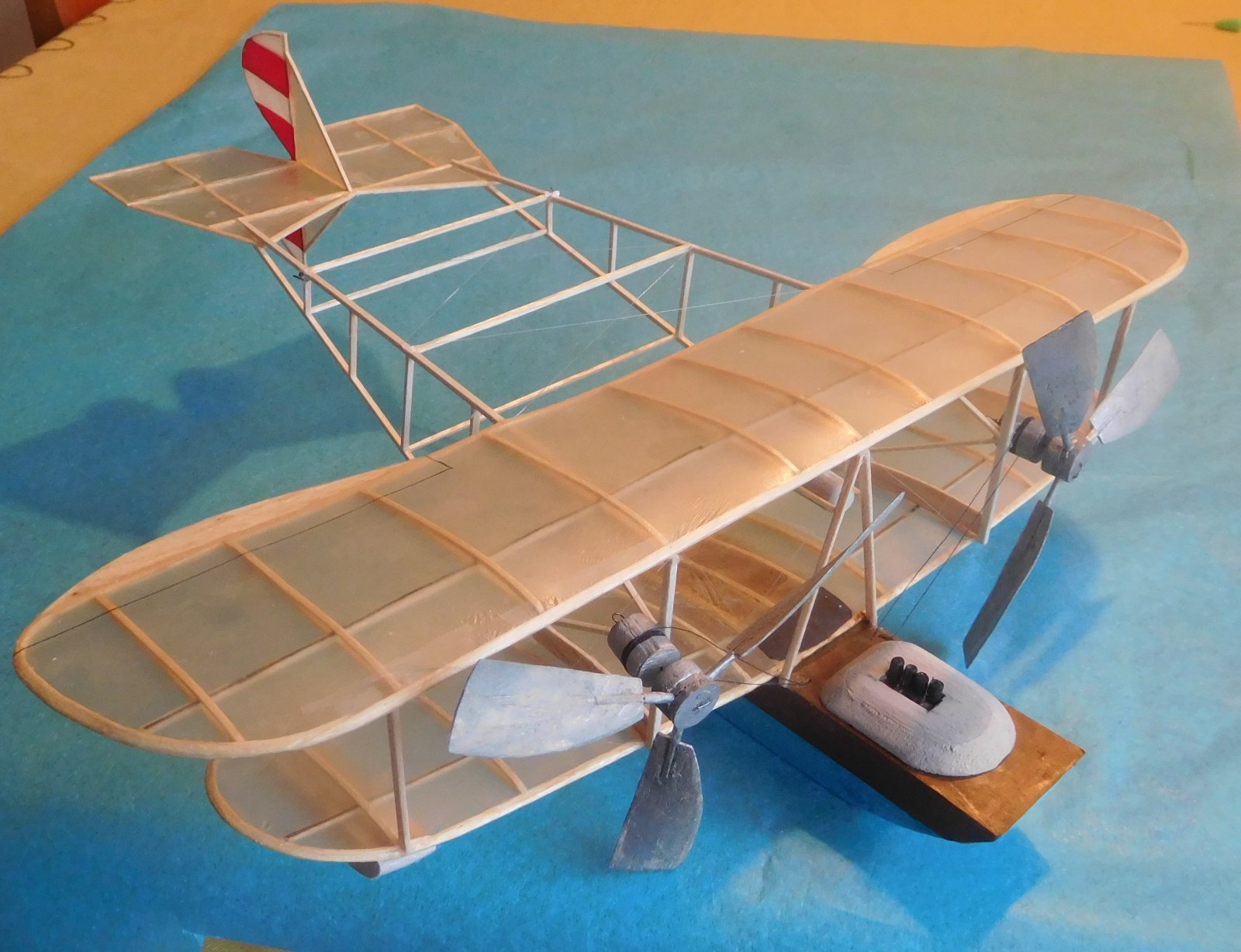3. Rekordní Nieuport 1912 se tan sotva vešel, okruhy o průměru 12m byly poznamenány termikou nad cestujícími a hlavně teplem z otevřených dveří z WC, nebyla odvaha model pořádně natočit.