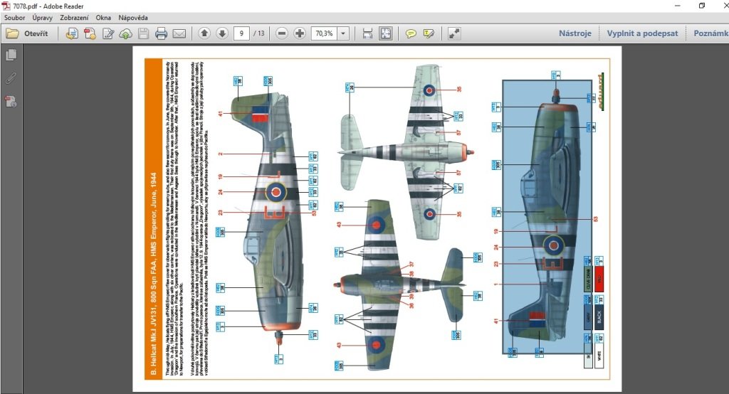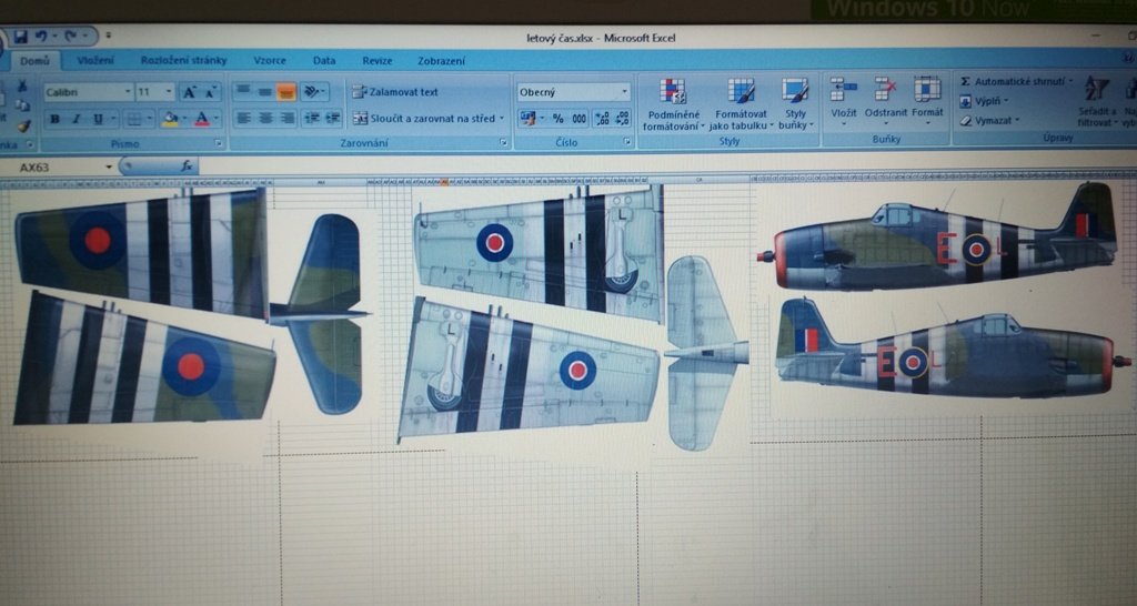 z manuálu ve formátu .pdf z kitu e-shopu firmy www.eduard.cz). Jednotlivé pohledy jsou z .pdf jednoduše přes „ručičku“ prohlížeče vybrány a uloženy jako obrázky .jpeg. Ty jsem následně vložil do excelu, zvětšil o 5% oproti šablonám (kvůli okrajům při potahování) a mírně výškově „natáhl“ – excel obrázky při tisku deformuje. Samozřejmě, lze to dělat i uživatelsky příjemnějšími cestami.