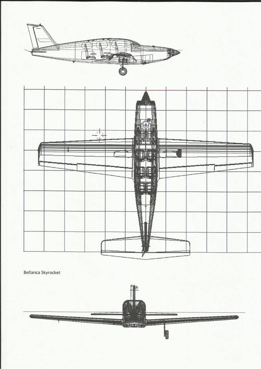 Jsem přesvědčený, že typ Bellanca Skyrocket patří mezi vůbec nejvodnější typy pro stavbu dvacetinky. Problém je v tom, že bodovačům se nelíbily podklady, tedy především 3 pohled které jsem měl k dispozici a nic jiného, lepšího nebylo tehdy k sehnání ani v Museu Bellanca. Moji známí minimaketáři mi sice poslali onu malůvku, co je na internetu, ale ta je dost ubohá,o moc lepší není ani 3 pohled z Janeś, ale pak se stal zázrak a já dostal od celkem neznámého hocha z Austrálie do detailů rozkreslený 3 pohled, včetně řezů. Dokonce se zdá, že stavba trupu podle tohoto podkladu by byla jednodušš, trup je v řezech tak nějak krabicovější a křídlo má větší plochu. Ještě si musím dát tu práci a přepočítat, zda tomu ve skutečnosti opravdu tak je.